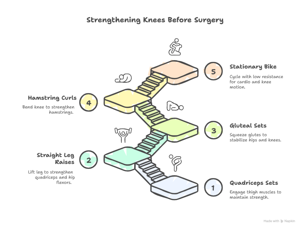 Important Note: Always consult with your doctor or physical therapist before starting any exercise program, especially before surgery. They will help you choose the right exercises for your specific condition and ensure you are performing them safely.