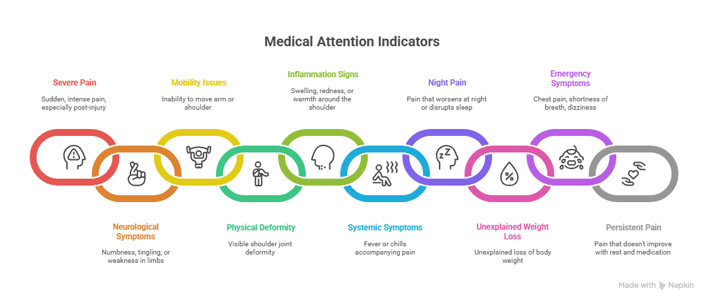 While some minor aches might resolve with rest, certain symptoms warrant prompt medical evaluation. You should definitely see a doctor, preferably at a facility like the Best Shoulder Pain Hospital in India, if you experience: